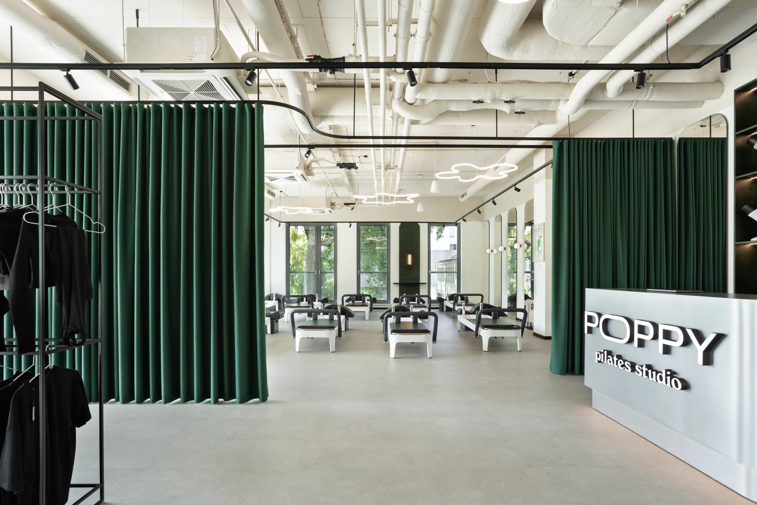Studio żyje kontrastami: ciepły – chłodny, miękki – ostry, energiczny – cichy. W ruchliwym centrum Katowic POPPY oferuje coś więcej niż pilates – to scenografia dla ciała i umysłu, przestrzeń, w której oddech odzyskuje swój rytm. To gra kontrastów i kolorów, które inspirują i motywują. Jasność spotyka się tu z przytulnością, a design podkreśla lekkość i dynamikę samego pilatesu.