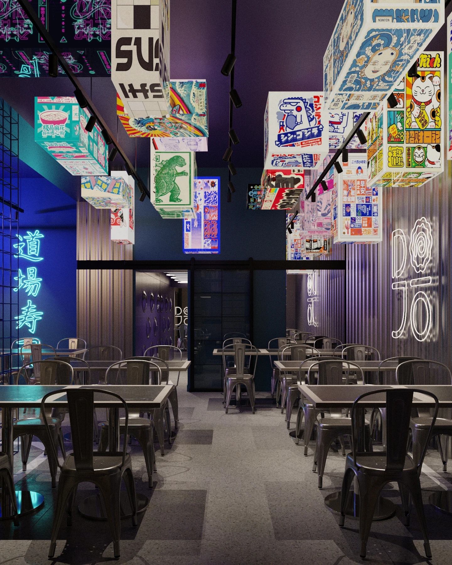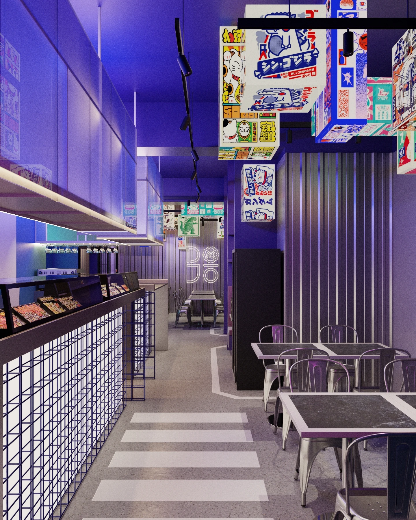 Projekt wnętrza restauracji inspirowany jest energią japońskich ulic i kulturą azjatyckiego jedzenia. To przestrzeń pełna koloru, światła i intrygujących detali, gdzie design łączy się z zabawą. Każdy element wnętrza wzmacnia doświadczenie kulinarne gości.